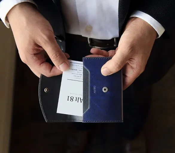 ビジネスでは一瞬の出来事が人の印象を決める。そしてその一瞬が与えた印象は長い間、相手の脳裏に焼き付いている。身だしなみや足元を見られていることはよく言われているが、名刺入れも例外ではない。人の持っていない、それでいて嫌味にならない名刺入れには仕事をうまく運ぶ理由がある。名刺を多く交換してきた人が相手なら、その視線を奪い、持ち主に対して興味を抱かずにはいられない。