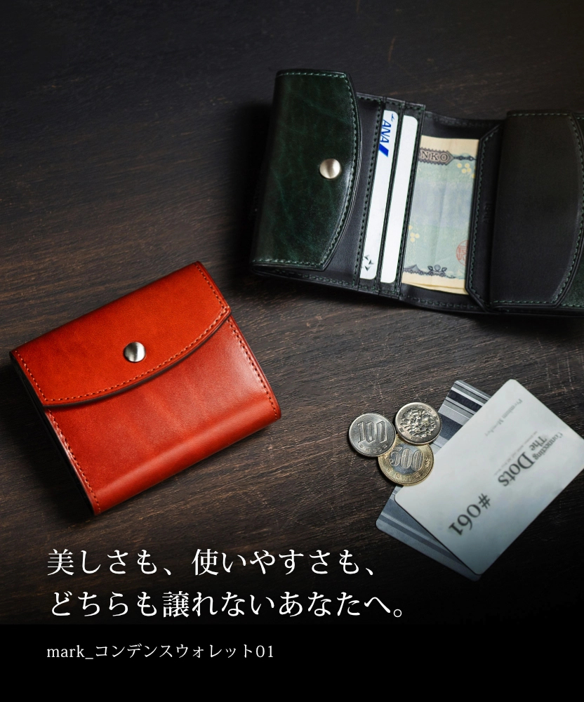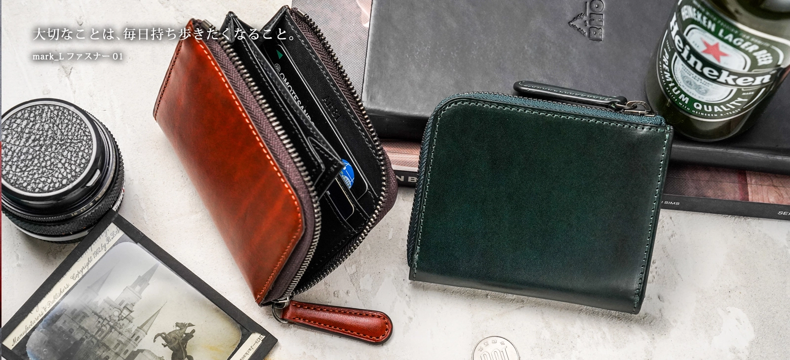 - 2024/06/24 【新商品】定番の形、Lファスナー、「mark_Lファスナー01」が遂に登場。カジュアルな形にフォーマルを纏わせるコンパクト財布に仕上がりました。