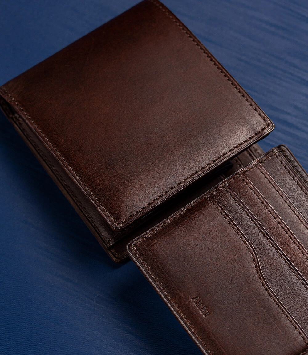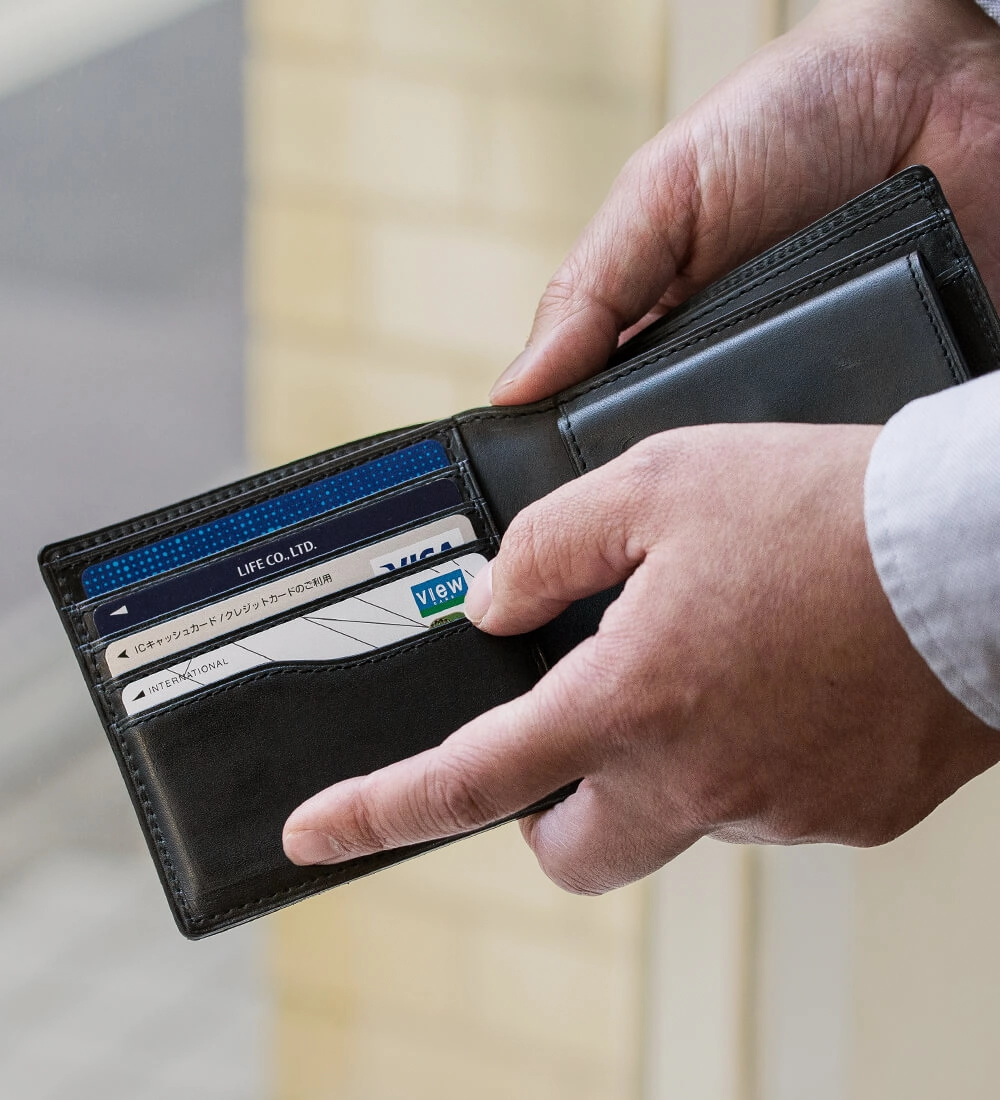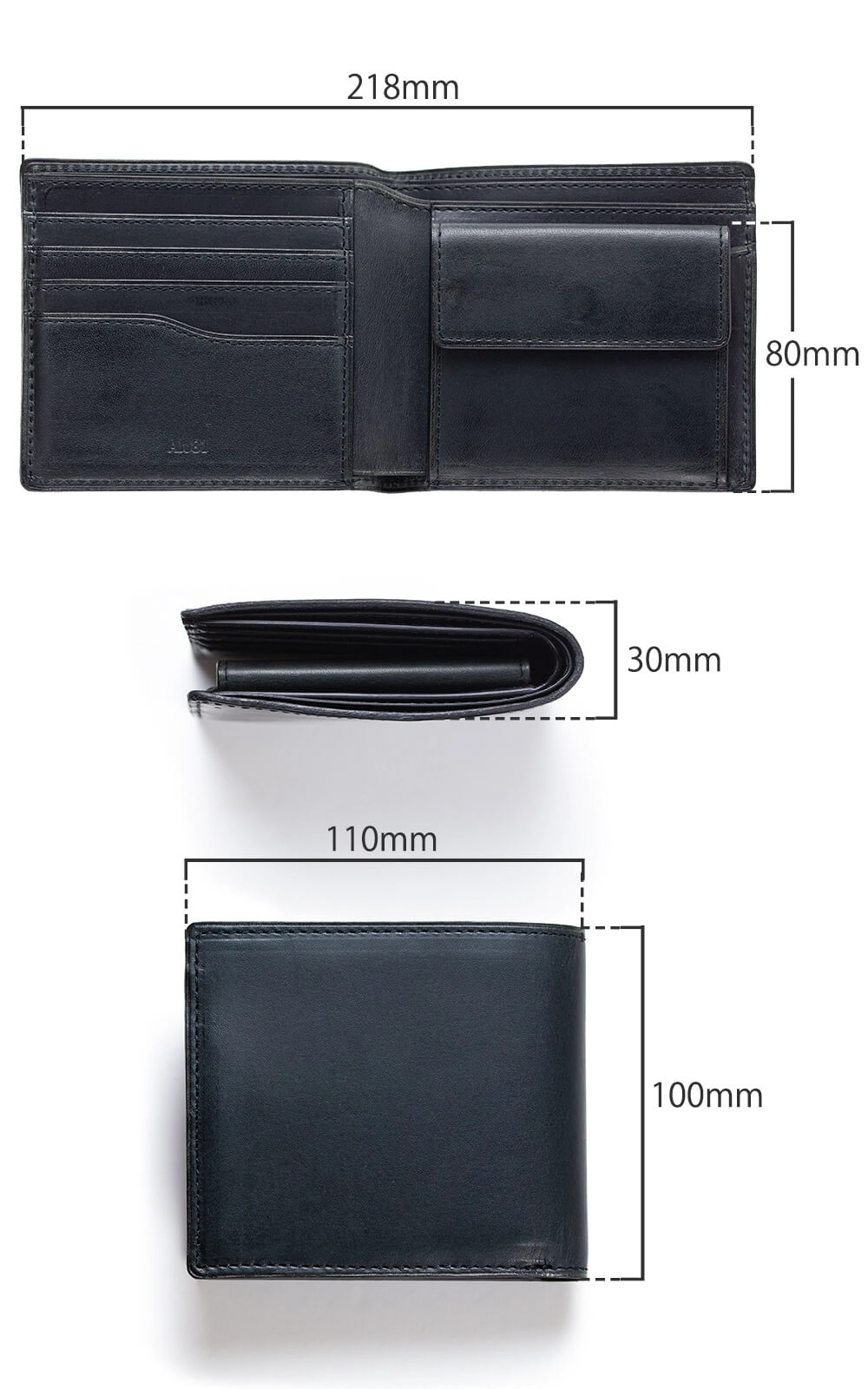 この二つ折り財布はまさに王道の形をしている。左側にはカード段が4段あり、右側には小銭入れがある。札入れは2部屋用意されており、領収書とお札を分けて収納できる。一見、代わり映えのない二つ折り財布という形だが、Alt81だからこその話も多い。ここからはその王道の系譜を辿りつつ、Alt81の世界観に浸っていただこう。