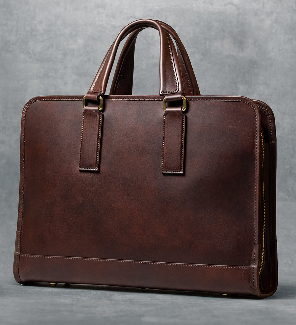 働き方が多様化する昨今、仕事鞄に求められるものは人によっても、また、目的によっても大きく異なる。そんな折に革の仕事鞄に求められるものは何かを常々考えているが、その答えの一つがこのtrack_ブリーフケース03だ。遠くからでも目を引く端正なフォルムに、「大きすぎる」「硬すぎる」「重すぎる」といったことのない絶妙なバランス感を持つ。「ありそうで、ない」と形容されるこのブリーフケースは革の持つ素材の魅力をしっかりと引き出している。Alt81を代表する仕事鞄である、このtrack_ブリーフケース03の魅力を存分にご紹介しよう。