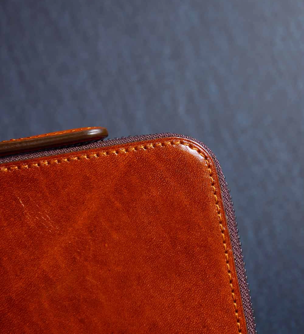 ステッチと縁の間に全体を囲うように引かれたネンはカジュアルに見られがちなLファスナーという形をエレガントに演出させるのを手助けしている。立体感が生まれ、平面であるはずの革がより豊かな表情を引き出す。これらの細かい箇所はしっかりと見なければ気が付かない。だが、それでもいい。いつかその価値に気づいてくれれば。