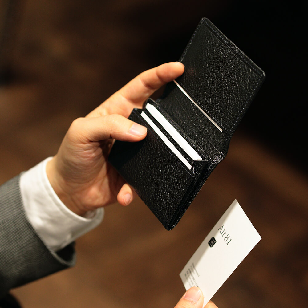 煌びやかなものは避けたい、それでいて人との違いをつけたい。仕事をする上で必ず持っていなければならない名刺入れだが、見た目にはあまり多くを求めることができない。だが、この名刺入れは違う。ギラッとした艶を持ち、シボ(革の凹凸)やトラ(シワの跡)が多彩に入り込んだ1点1点異なる見た目で人との違いを自然に演出してくれる。仕事の傍らで、力強い味方となってサポートしてくれるだろう。