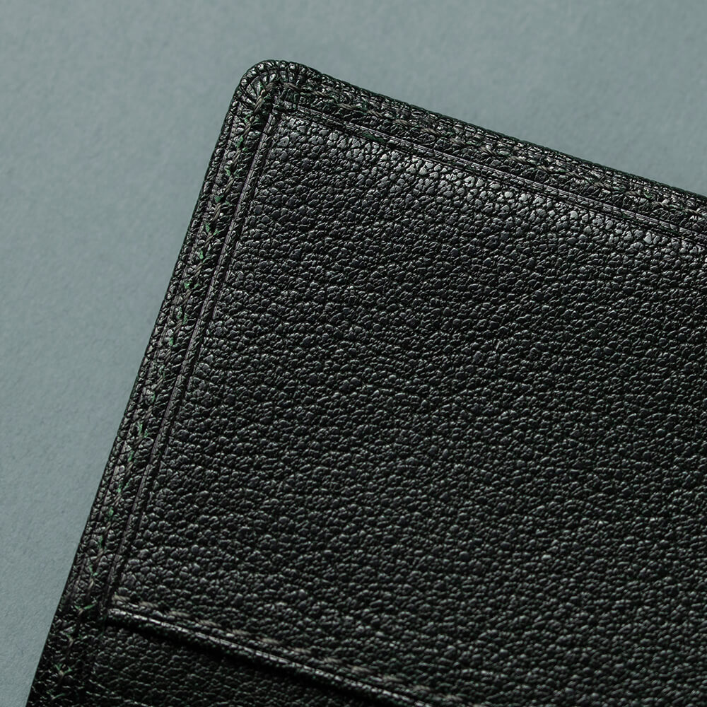 P&Dバッファローカーフは定番のブラックと少し変わった色味のグリーンの2色展開だ。ブラックはグッと引き締まった印象を相手に与え、隙を作らない。ステッチが紺色なので、際立ち攻めていく人にはうってつけだ。グリーンは少し柔らかな印象を与え、個性も足してくれる暖かみを感じる色。ステッチはチャコールグレーになっており、こちらは仕事にちょっとしたアクセントを加えたい人にピッタリだ。