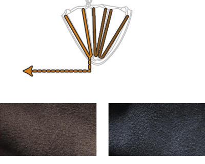ルガトショルダーは使用する箇所によって様々な表情を見せてくれる。その代表格は「トラ」と呼ばれているシワ模様で、二つとして同じものが存在しない。店頭では表情を必ず選んでいただくが、Webで購入の際もリクエストをいただければ選ぶことができるし、こちらに一任していただくことも可能だ(購入の際の備考欄にご記入ください)。どんな表情のものが届くか心配になるかもしれないが、あまりに激しい表情は店頭でなければご提案しないのでご安心を。