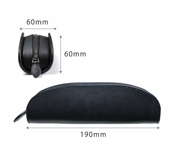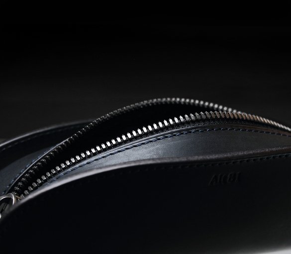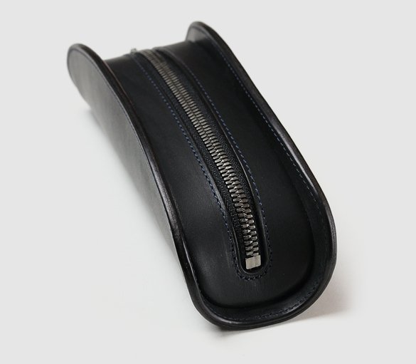 中央に向かって緩やかな弧を描くカーブは、中に入れた消しゴムなどの小物が開閉する際に引っかからないように設計段階で入れた工夫。また、壊れがちなファスナーへの負担を軽減させる目的も担っている。使用しているファスナーにもスムーズな開閉が可能になるエクセラファスナーを採用。噛み合うひとつひとつの金具「務歯(むし)」を磨き削るひと手間が入っており、通常よりも良い滑りを実感出来る。スムーズに動くからこそ負荷がかかりにくく、壊れにくい。またファスナーが端から端までしっかり開き使い勝手が良い。