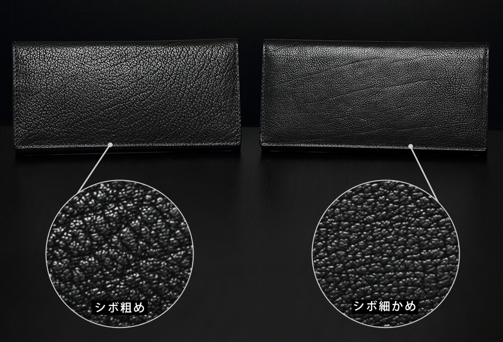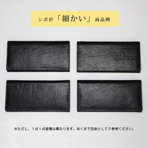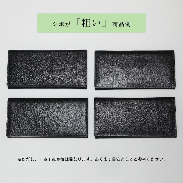 シボの凹凸でその印象を大きく変えるP&Dバッファローカーフ。シボ粗めのものは少し弾力があり、傷が付いても目立ちにくく、シボ細かめはピシッと整った模様に精緻さと美しさが感じられます。好みは人によっても異なるため、リクエストにも可能な限りお応えしております。ご希望のお客様は是非、購入時のお問い合わせフォームよりご指示くださいませ。表情選択サービスによる写真希望の方はその旨も忘れずにご記入ください。