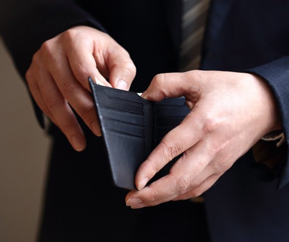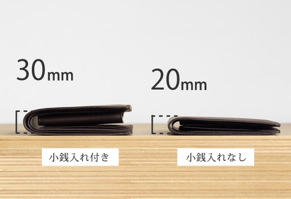 二つ折り財布は機能的で使いやすいが小銭入れがある分厚みが増すのに対し、純札入れは小銭入れがないため薄い。何も入れていない状態での厚みの違いも大きいが、使い出すとその差はより大きくなる。実は二つ折り財布と純札入れは使う人が面白いほどきっぱりと、まるで派閥のように分かれている。小銭入れがあるのか、ないのか。その違いは持つ人にとって果てしなく大きい。