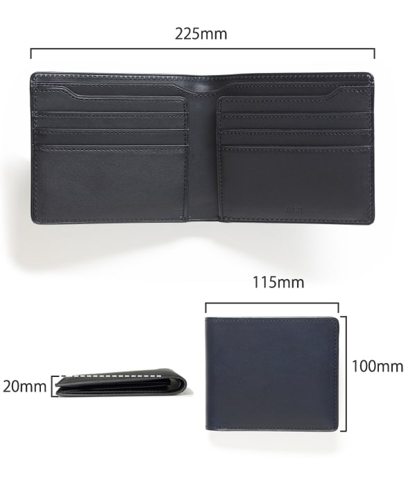 この純札入れは二つ折り財布よりも少し横長に、ゆとりを持たせて設計している。そのため、縦長のポケットなどに入れた時に出し入れがしやすい。小銭入れが付いていないことで財布の形が崩れることもなく、非常にスマートな印象をもたらしてくれるだろう。